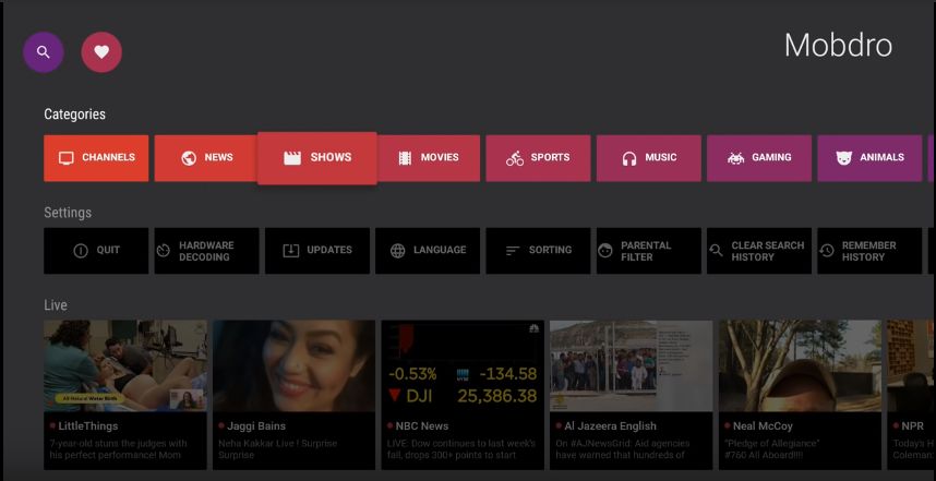 Another interesting feature is Chromecas, using which you can even stream the channels on TV. In addition, you can even install Mobdro on Amazon Firestick, Fire TV, Kodi, and Roku. Recently, its TV mode was launched, so now you can enjoy the premium service. So you can now stream different categories of live TV channels from sports, movies, music, games, news, podcasts and more.
