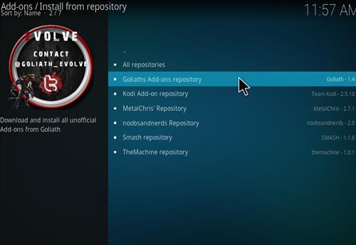 Step 4- Now choose the Install from repository option. And click on Goliaths Add-ons repository option to open it.