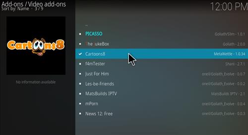 Step 5- Open the Video Add-ons on your Kodi platform. And then select Cartoons8 Addon. Click on Install.