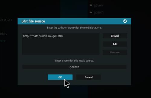 Step 4- Next give the media source of the repository a name such as Mats. Click ok.