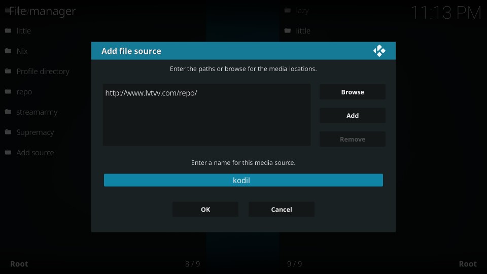 Step 6- Enter the name for the media source. Like you can enter the name ‘Kodil’.