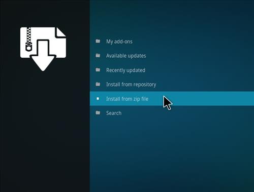 Step 6: From the left corner of the screen, click on the Add-ons browser icon. Choose the Install from Zip file option from the list.