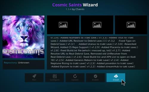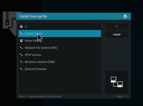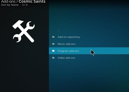 Step 10: Follow the given router to complete the process- Program add-ons>Cosmic Saints Wizard> Install.