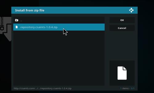 Step 3: An address bar will open, type the following address in the given space. http://csaints.com/repo/repository.csaints/ or https://archive.org/download/plugin.program.CSaintsWizard/