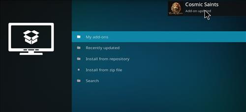 Step 8: Wait till you get the pop-up message of successful installation of Cosmic Saints. Look for the message at the top right corner of your screen.