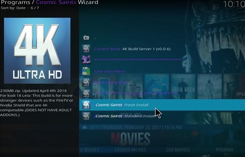Step 12: Now click on Build Menu, followed by 4K Build. Then choose one of these two options- Cosmic Saints Fresh Install or Cosmic Saints Standard Install.