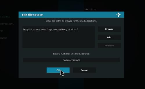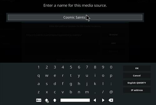 Step 4: Name the media source as Cosmic Saints. Match your window with the picture given below.