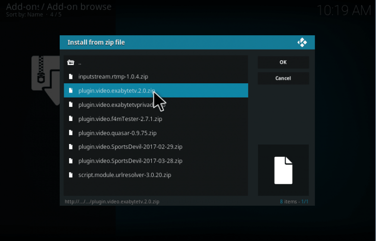 Step 9- Now click on the plugin.video.exabytetv.zip option. Then wait for a few seconds till you get the notification message of Add-On being enabled on your device.