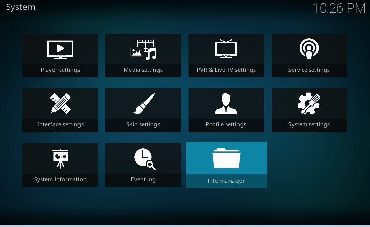 Step 2- In the new window, you will see various settings option like Interface settings, or player settings. Click on the File Manager icon.