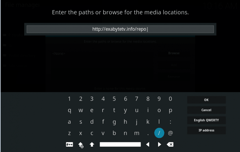 Step 5- Now enter the following URL in the space provided- http://exabytetv.info/repo. Click on Ok.