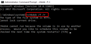 Step 2) On your keyboard, Type chkdsk /f /r, then click Enter.