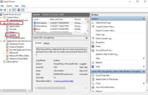 Step 2) Select Windows Logs on the left side of the panel, and then System.