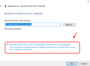 Step 7) Select ‘Let me pick from a list of available drivers on my computer’ as shown below.