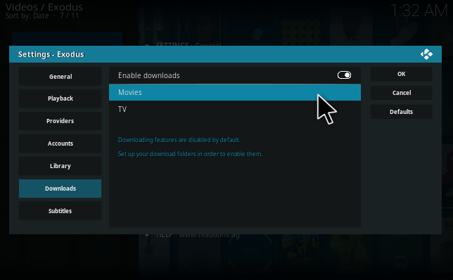 The next task is to download the Movies and TV shows. For that simply click on Movies or TV shows in Exodus addon page.