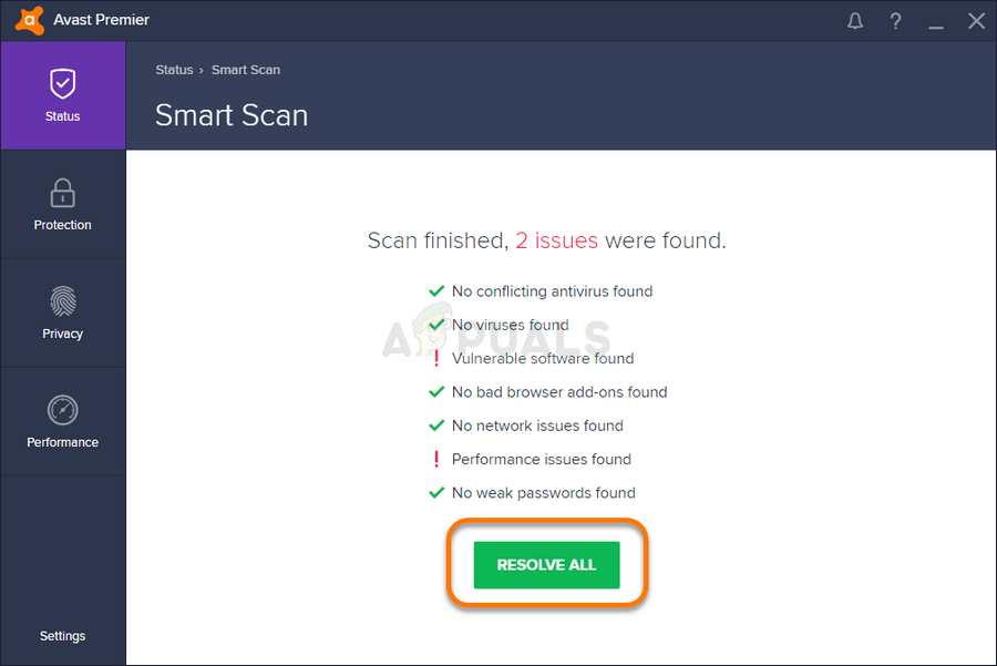 Step 1- Open the Avast user interface, click on the Protection button, and select to scan all the devices from the window that opens.Â