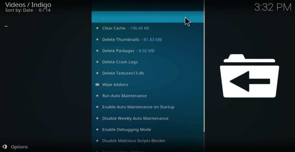 Rejuvenating Kodi might not always be an option for you to fix the Kodi issues. In that case, the Factory Restore feature of Indigo lets you reset Kodi. This will delete all your addons and configuration data, leaving you with a “blank” Kodi.