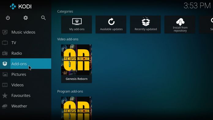 Step 9- From the Kodi Home Screen, click on the Add-ons menu to the left.