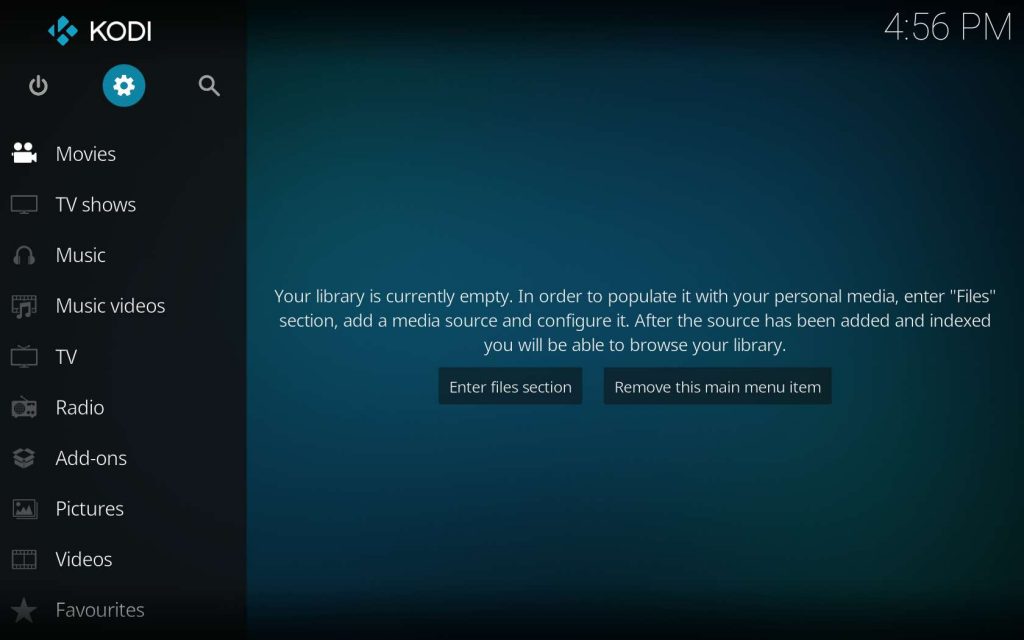 Step 1– From the Kodi home screen, go to the System menu. Or click on the gear cog icon. Go to Settings.