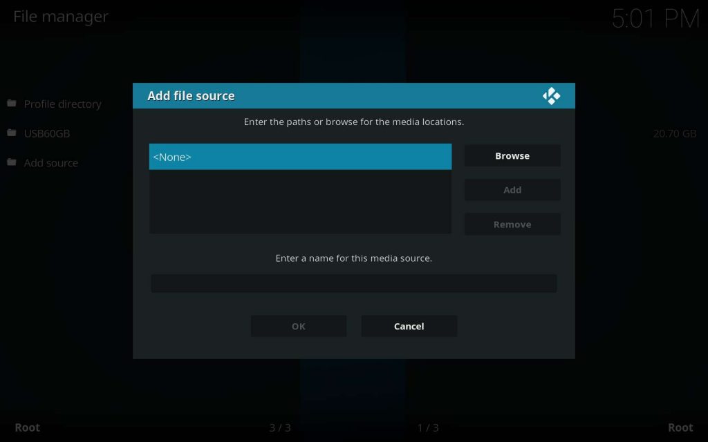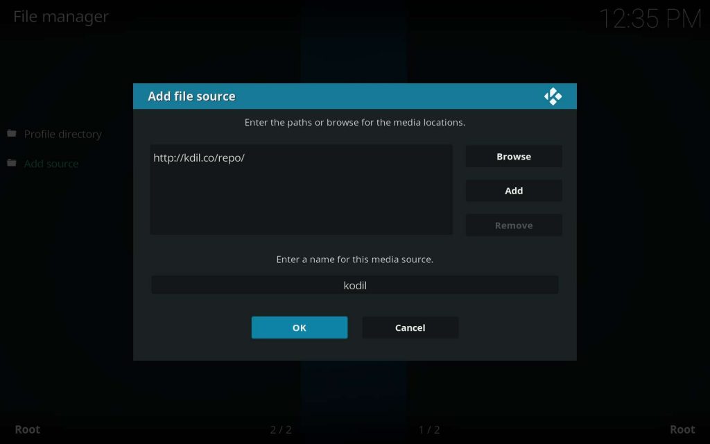 Step 5– Name this media source as kodil to remember easily. Then click on OK.