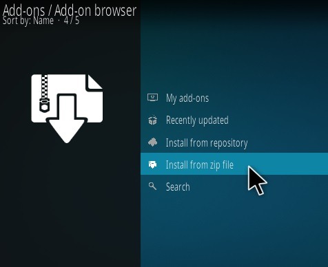 Step 7- Go to next screen, select Install from zip file inside the Addons Browser.