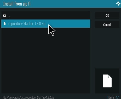 Step 10- You will now have to select repository.StartTrec.x.x.zip to add the source repo for Venom Replays addon.