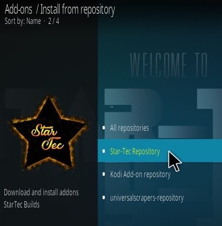 Step 12- Then select Star Tec repository after scrolling to it. Hit enter.