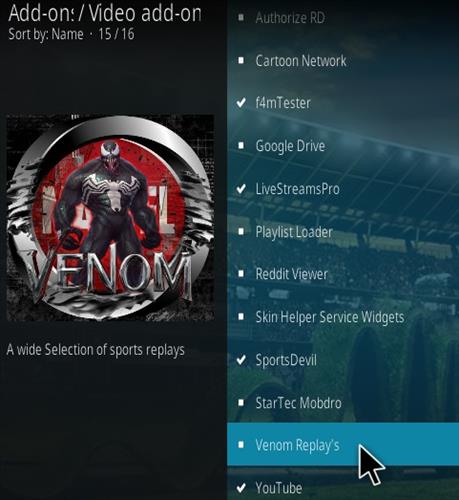 Step 14- Inside the Video add-ons section, click on Venom Replays.