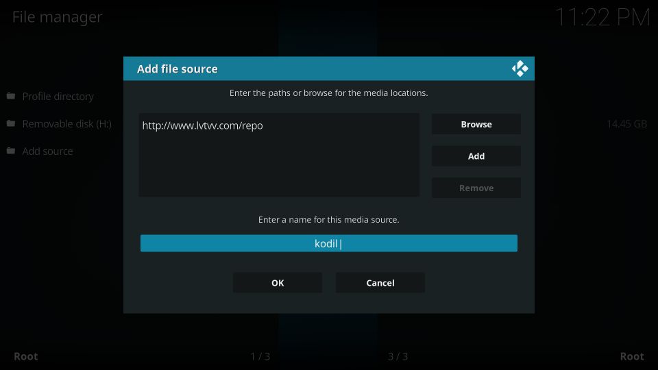 Step 5– Once you entered the source URL, click the field ‘Enter a name for this media source’. For instance, enter the name ‘kodil.
