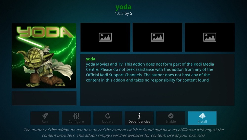Once you get this notification, the Yoda add-on for Kodi has been successfully installed.
