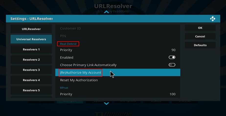 Step 5- Now under Universal Resolvers, Real Debrid section change the priority from 100 to 90. Press Done> Ok.