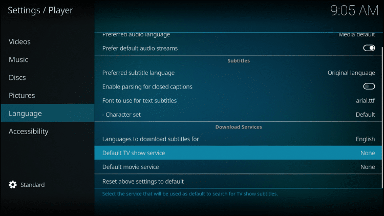 Step 13- Click on Default TV show service. And then on OpenSubtitles.org.