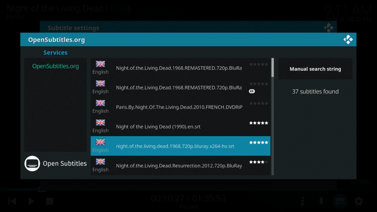 Step 17- Click a subtitle file with a good rating. Subtitles will appear now on movie or TV show.