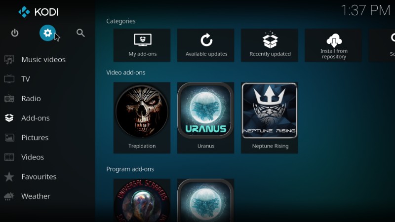Step 1- Go to the Kodi home-screen and click ‘Settings’ on the top-right.