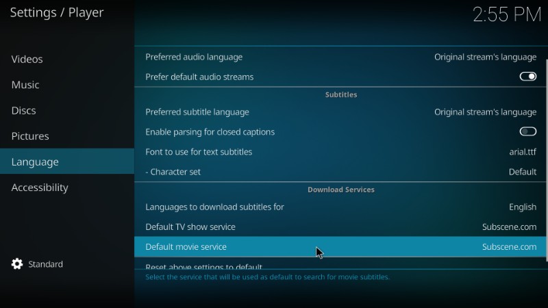 Step 14- Again click on Default movie service. OpenSubtitles.org.