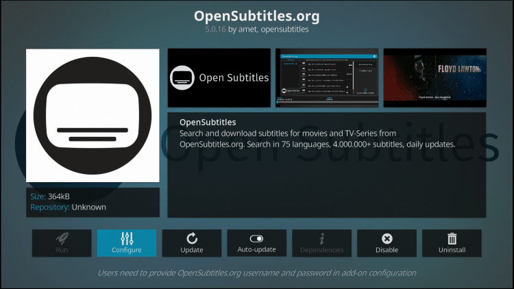 Method 1- Setup Subtitle on Kodi Using OpenSubtitles