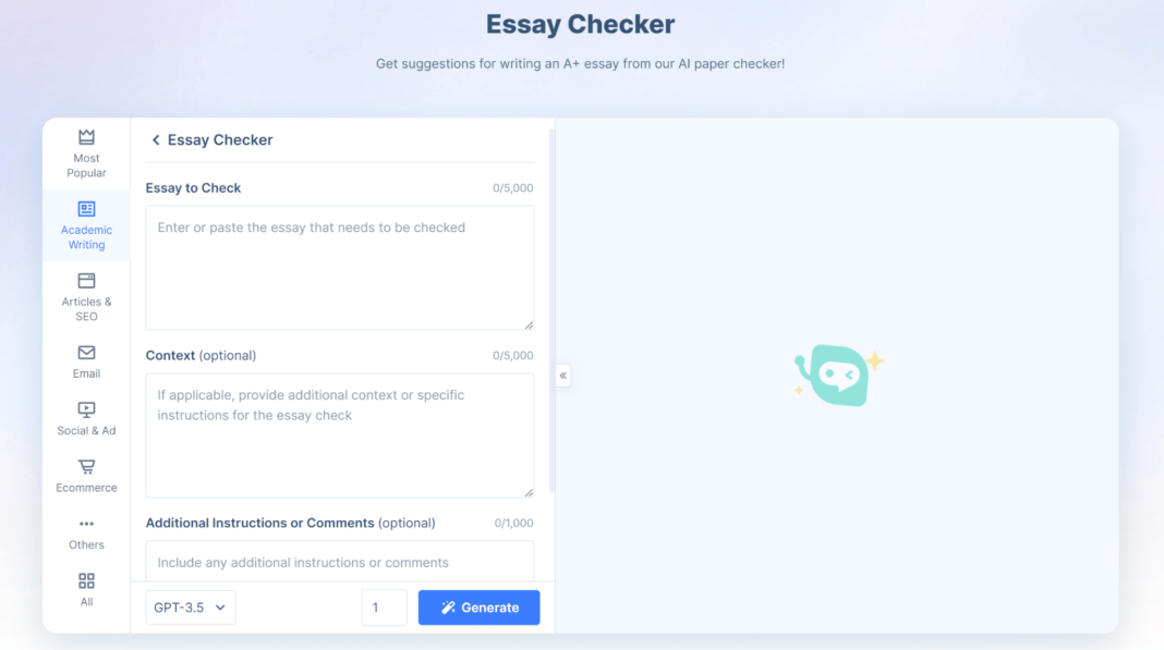- Initiate the AI essay checker’s review process by clicking the “Generate” button.
