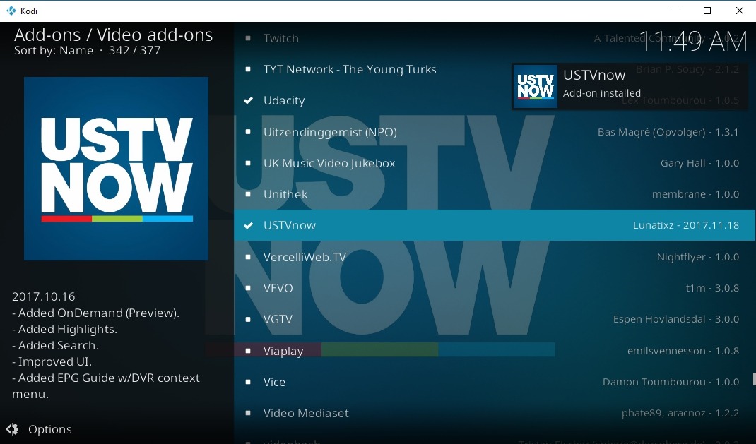 Another official Kodi add-on is USTVNow. It is fast, high-quality, user-friendly and completely legal. The official Kodi content is linked directly to the website of USTVNow. This service is the best alternative for travelers to broadcast TV so that they can never miss their favorite shows while traveling abroad. A lot of the content available on USTVNow is free, or you can also upgrade your account for access to more channels.