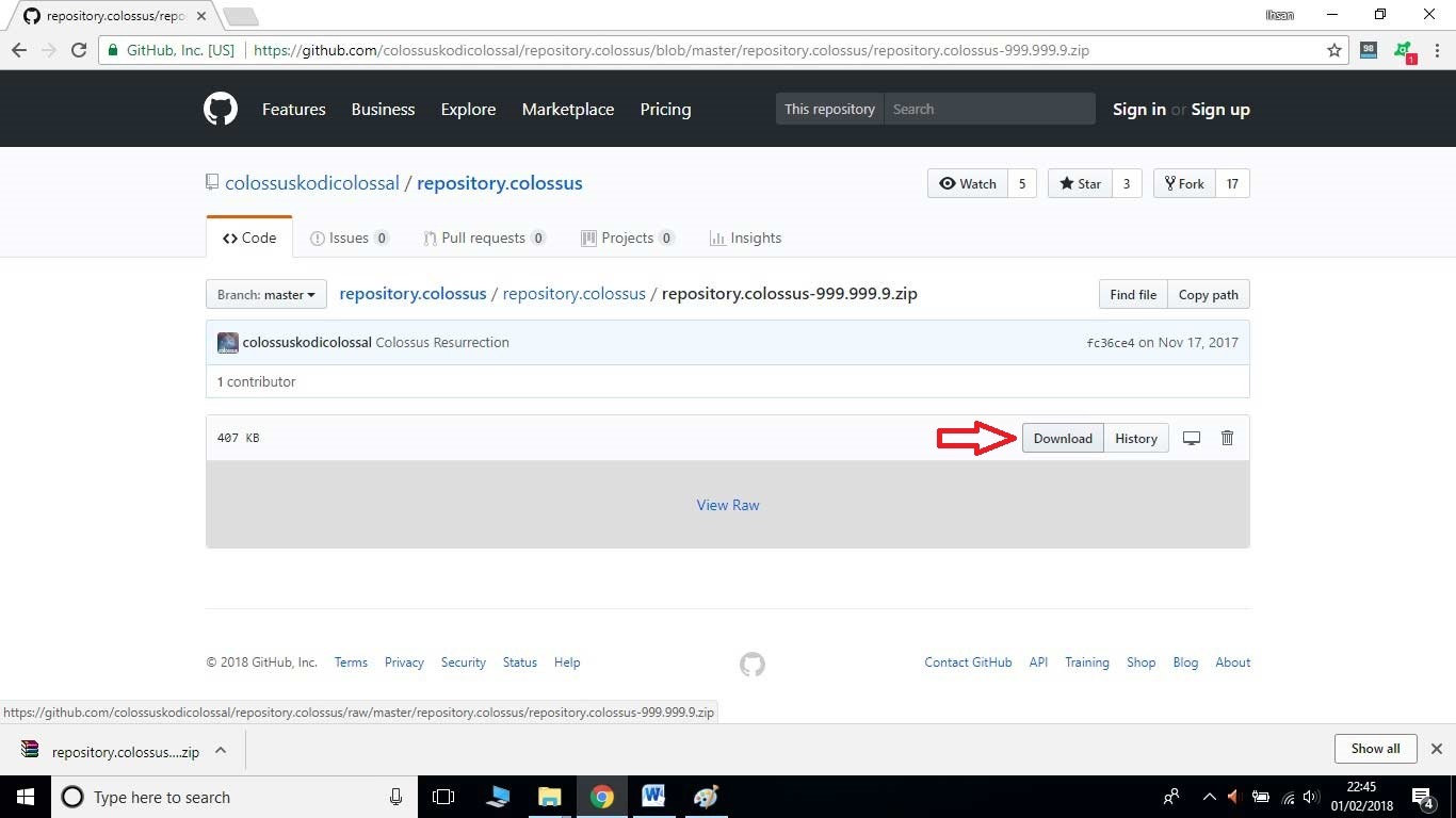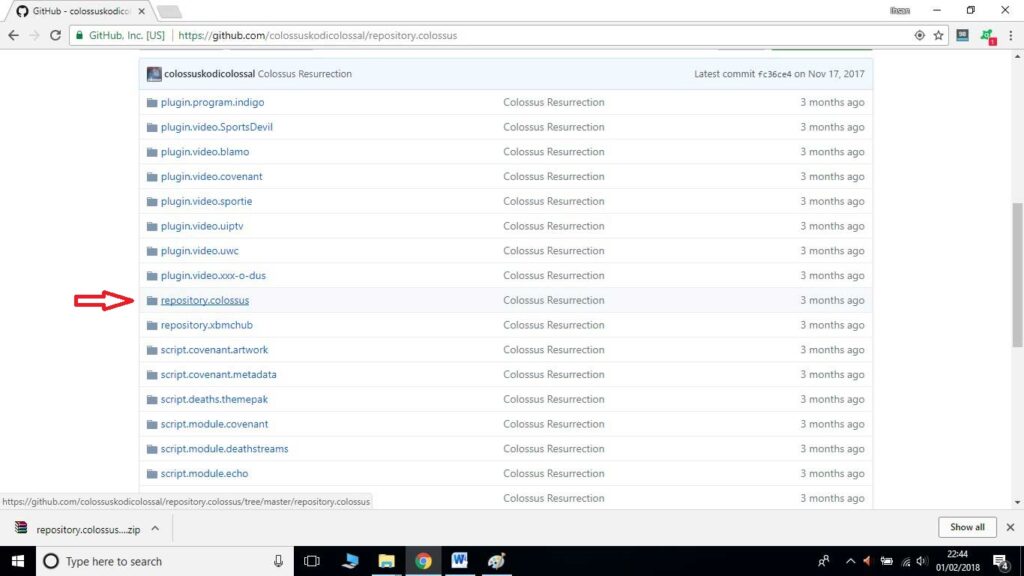 Step 1: Open your browser, say Google Chrome. Then open the Colossus repository GitHub page- https://github.com/colossuskodicolossal/repository.colossus