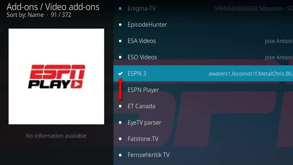 Step 3- The Kodi Add-on browser will open. Now choose either ESPN 3 or ESPN Player from the list.