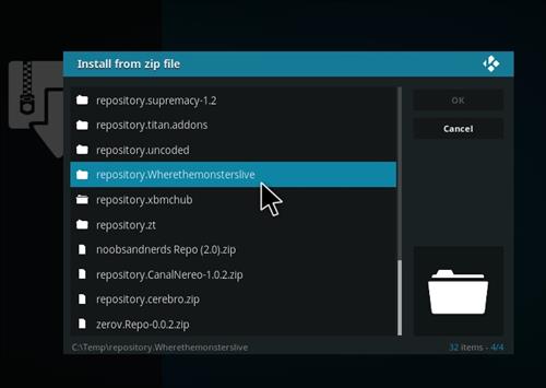 Step 2: Download the “where the monster live” repository by clicking on it. Now open Kodi on your device.