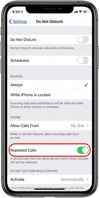 If you get blocked & you call another person repeatedly. Then soon your call will go on account of using the “Repeated Calls” features. However, it would not assure you about blocking the number, as it can be turn off by the other person.