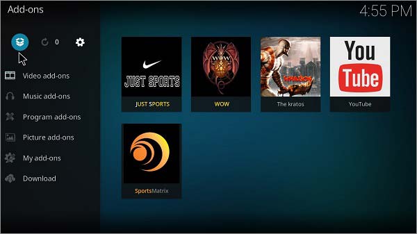 Step 5- Now return to the home screen and click on Add-ons option. In the next window, click on Package Installer icon at the left corner of the screen.