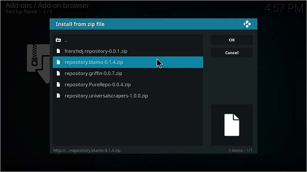 Step 7- To install the media file click on the repository.blamo-0.1.4.zip file by double-clicking on it. The installation process will soon begin and you will get a notification message after the installation process completes.