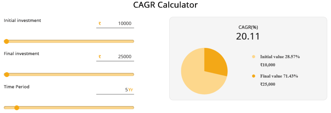 Innovative financial solutions have made the calculation process simpler and more accessible. One can make use of a dedicated CAGR calculator, which often comes with trading apps to calculate the CAGR of any investment. Here’s how one can calculate CAGR with the CAGR calculator: