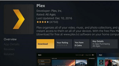 Step 7- Click on it and you will be redirected to the information page of the app. Now press the Download button to get Plex on Firestick.