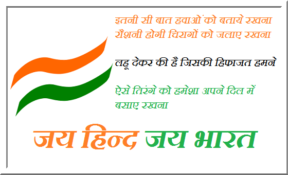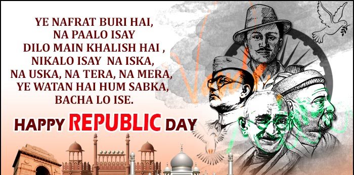 - DESH bahkto ki balidaan se,SWATNATRA huye hai hum..koi puche kon ho,to GRAV se kahenge.Bhartiya hai hum…HAPPY REPUBLIC DAY.