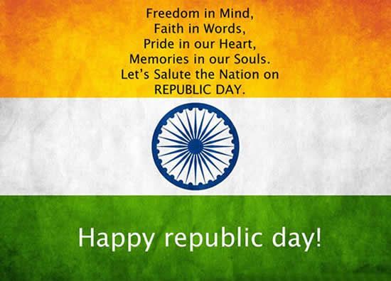 - Freedom In The Mind, Strength In The Words, Pureness In Our Blood, Pride In Our Souls, Zeal In Our Hearts, Let’s Salute Our India On Republic Day. Happy Republic Day!