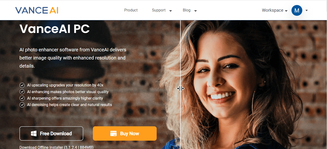 Step 1: Access VanceAI through any up-to-date web browser. After you have it, go to their website and select the “Free Download” button to get the AI program for your PC. You can get VanceAI for PC by going to the VanceAI Software page.