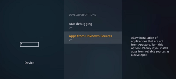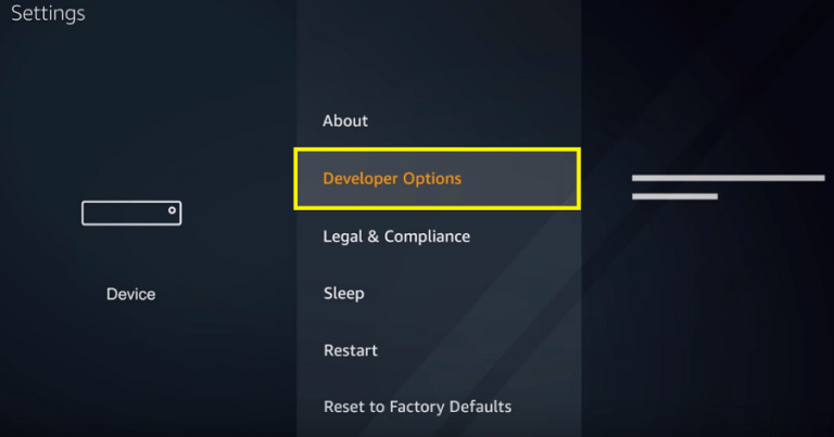 Step 4- Now click the “Device Options” or My Fire TV. Choose the “Developer Options”.