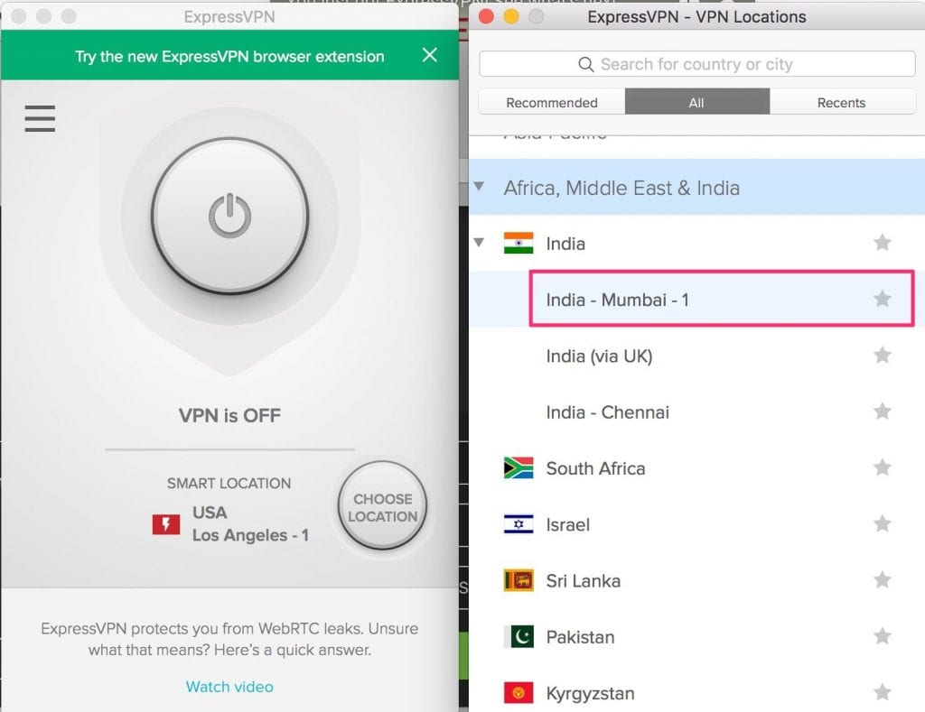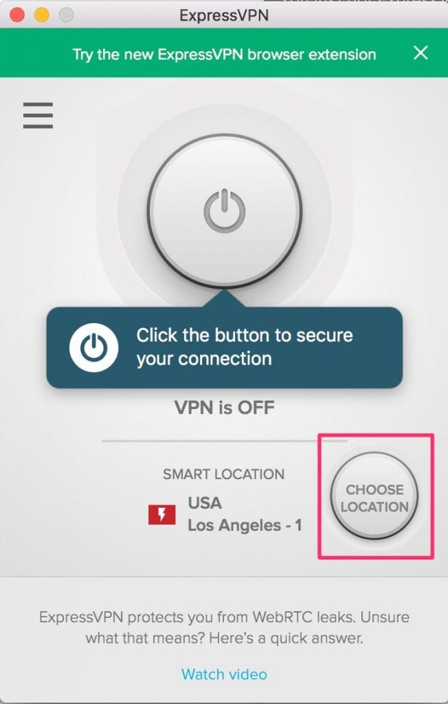 Step 2- Launch the ExpressVPN app and connect to one of the available Indian servers. Click the ‘Choose Location’ button on the ExpressVPN home-screen.
